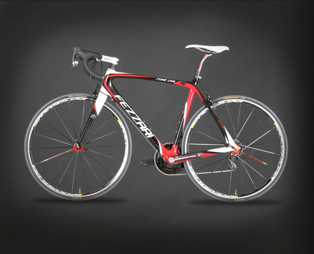 Take, for instance, the state of the art proprietary Fezzari Racing Design Xr7 3K monocoque carbon fiber frame. We used the highest grade of carbon fiber available on the market. We made it even stiffer laterally by enlarging the bottom bracket shell and adding the BB30 bottom bracket/crank design, strengthening the headtube and making it more laterally stiff by enlarging the diameter to a 1.5" tapered design. We've also enlarged the seatstays near the rear axle for more lateral rigidity. We made the Xr7 frame even more vertically compliant for those rides on the cobblestones. We've done this by using an oval design in our top tube and down tube. The new Xr7 frame is even more aerodynamic than before with the new F4 ultralight bladed carbon fork and internal cable routing on the top tube. The Xr7 frame was recently tested to be one of the most durable frames on the market, and it weighs a mere 900 grams. Strength, lightweight, rigidity where you need it most, and flexible enough to take the edge off of rough roads -- it's the perfect frame for anyone who wants to get the most out of their riding experience.
